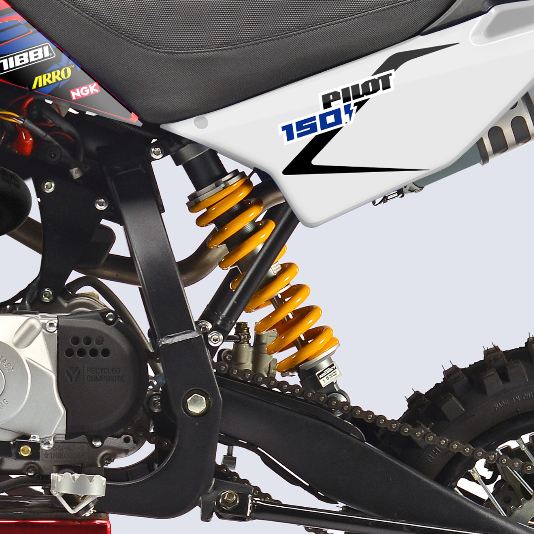 Backing up what makes the PILOT 125 so good, and adding more power, The PILOT 150 is ready to fly! The beefier frame, more compliant suspension and the electric start 150cc engine combine to make a super fun and predictable package, good for just about anything – ripping around the mx track, battling bars with your friends or learner critical riding skills.