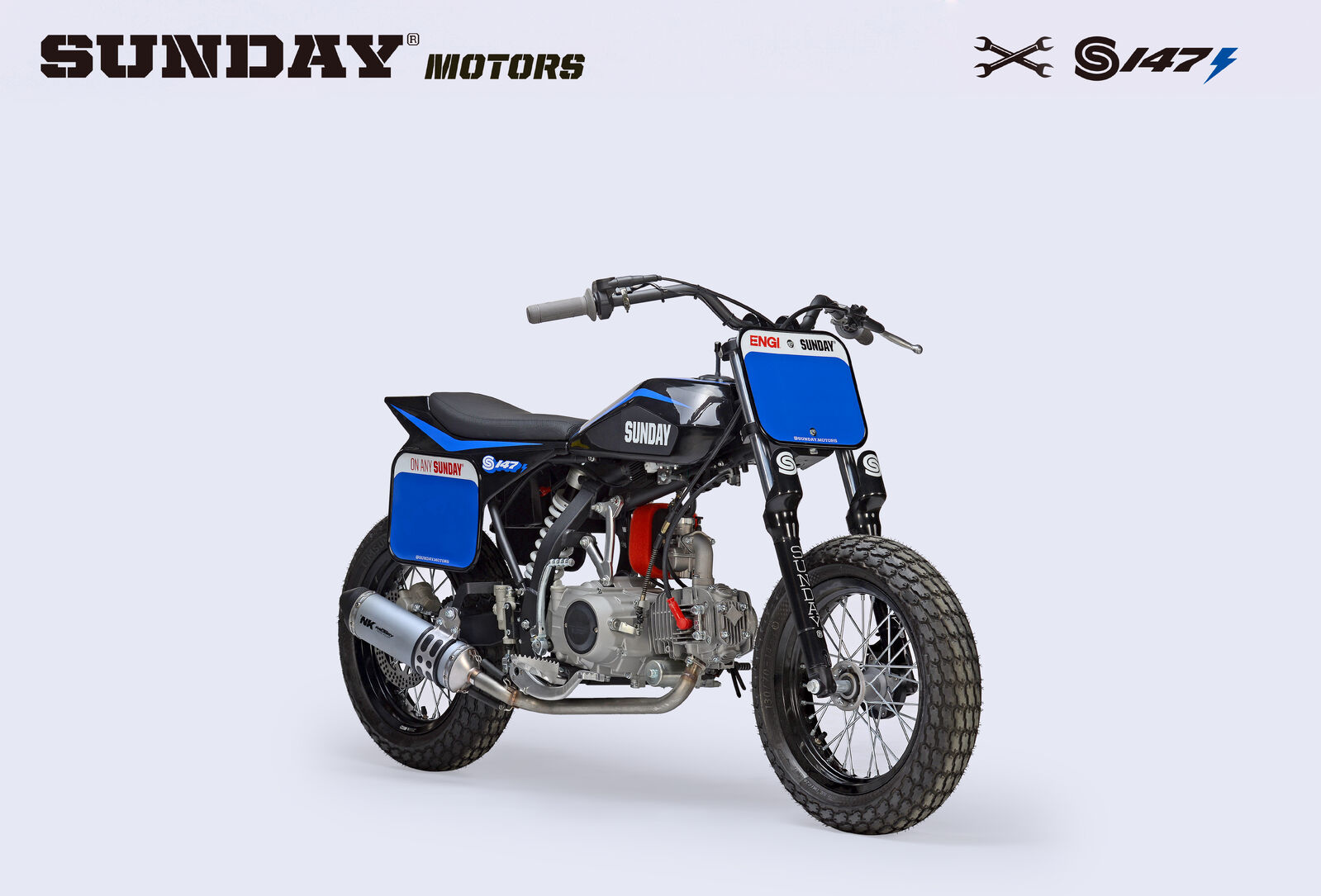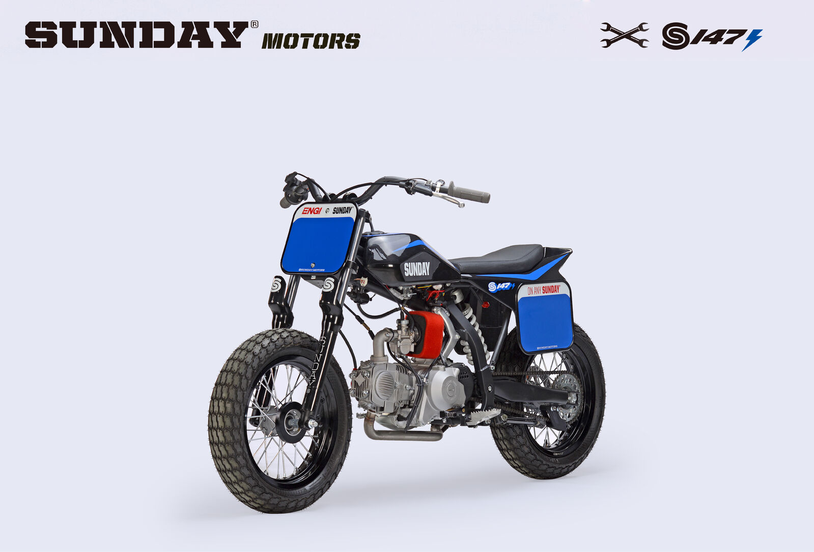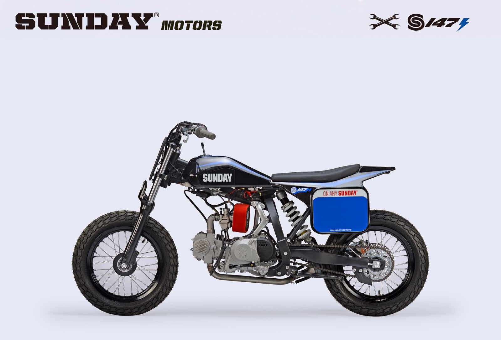 Go fast and turn left! The 2 main principles of flat track racing and the Sunday Motors S147E is designed to teach young and old exactly that! Out of the box, this bike is set up specifically for flat track racing, designed to deliver an authentic riding experience. Now with electric start, the linear power of the 150cc engine allows riders to learn the throttle control and techniques required of flat track riding, while the new for 2022 front brake, gives new riders the confidence needed to keep going, lap after lap!