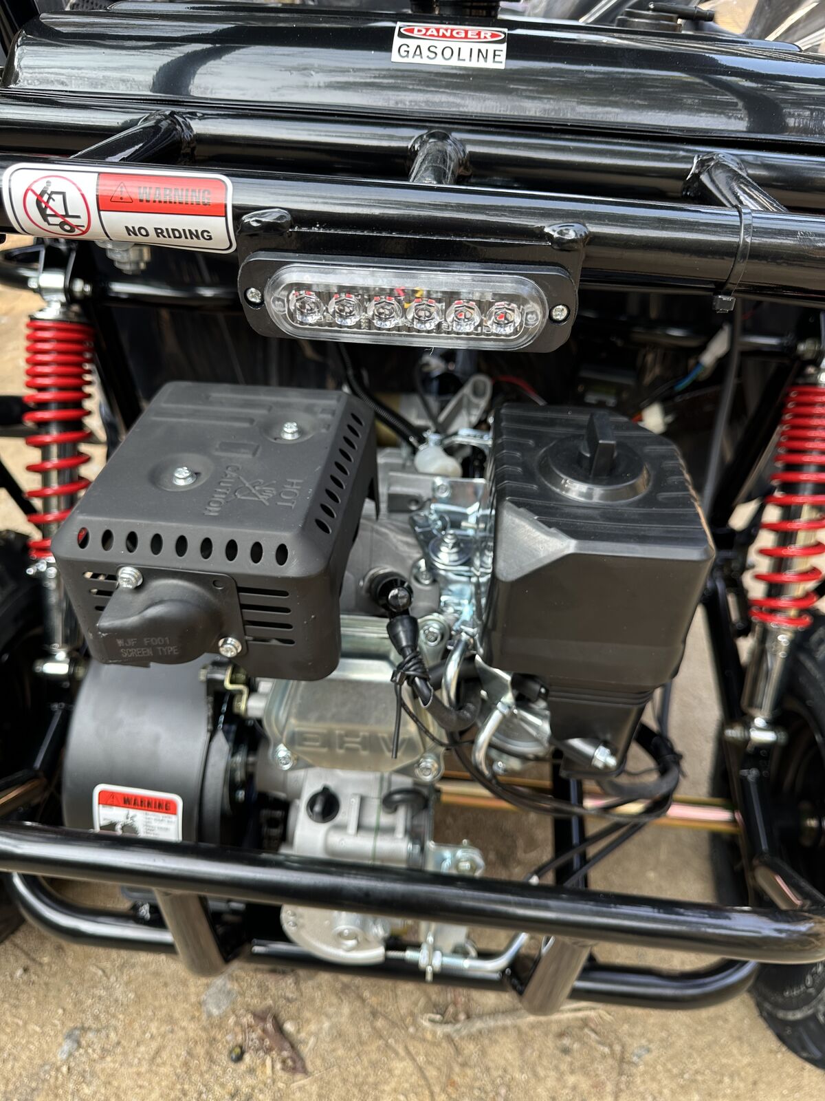 For convenience and visibility, the buggy comes standard with LED headlights and a generous 6L fuel tank, offering hours of riding time on a full tank.