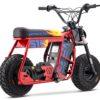 THE EBX Dragster is FINALLY HERE! In a world full of limp, slow, plastic failures, comes a truly HARDCORE electric minibike with more steeze than should be legal in such a miniature package. Featuring insane top speeds of up to 55 mph, the EBX is now delivered with a SERIOUS safety warning: Do Not Ride if You are Easily Frightened. Choose from 3 ballistic powertrains and multiple mind-blowing colourways. Fully re-engineered and reconsidered with a temperature protected PMSM encoder motor, 80 Amp Fardriver controller, bigger batteries, bigger brakes and 3-mode smart TFT colour display. Other exciting features are available such as bronze inverted suspension forks, an integrated LED headlight and luxury suede printed seats. The EBX range firmly cements the Dragster as the “Ultimate Wheelie Weapon” and King of the streets. .