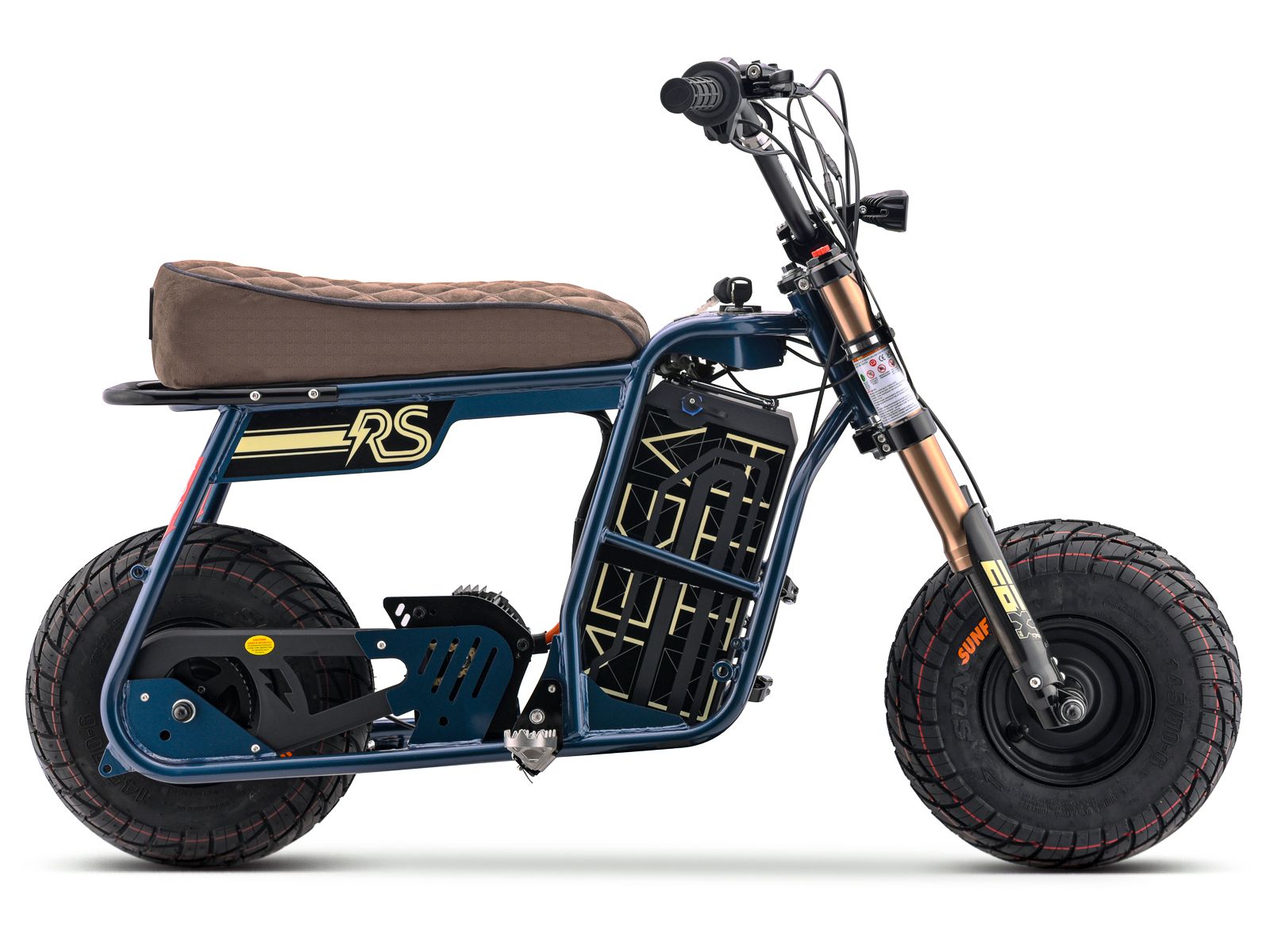 THE EBX Dragster is FINALLY HERE! In a world full of limp, slow, plastic failures, comes a truly HARDCORE electric minibike with more steeze than should be legal in such a miniature package. Featuring insane top speeds of up to 55 mph, the EBX is now delivered with a SERIOUS safety warning: Do Not Ride if You are Easily Frightened. Choose from 3 ballistic powertrains and multiple mind-blowing colourways. Fully re-engineered and reconsidered with a temperature protected PMSM encoder motor, 80 Amp Fardriver controller, bigger batteries, bigger brakes and 3-mode smart TFT colour display. Other exciting features are available such as bronze inverted suspension forks, an integrated LED headlight and luxury suede printed seats. The EBX range firmly cements the Dragster as the “Ultimate Wheelie Weapon” and King of the streets. .