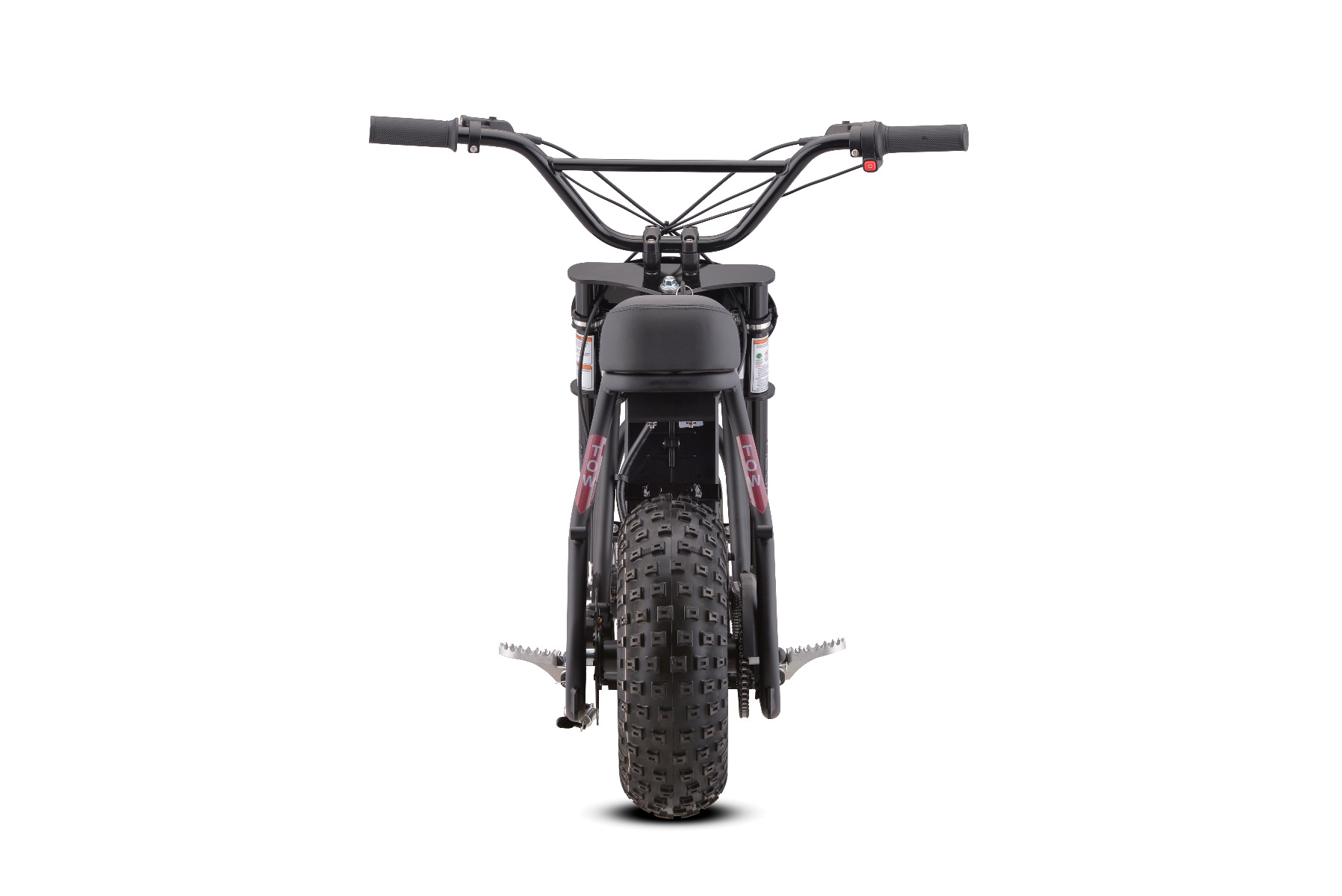 Frame construction High strength steel, powder coated, removable motor plate, integrated chain tensioner, loop tail design, quick release battery system, 2-point foot peg position mounts, stunt peg compatible.
