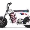 Frame construction High strength steel, powder coated, removable motor plate, integrated chain tensioner, loop tail design, quick release battery system, 2-point foot peg position mounts, stunt peg compatible.