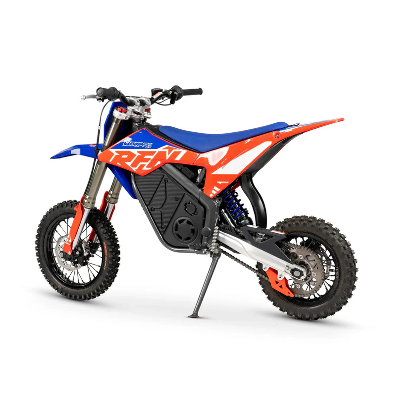 Equipped with a 12” front and 10” rear knobby tire setup, the SX-E5 is ready to tackle everything from backyard dirt tracks to proper off-road trails. With 205mm of front suspension travel and 180mm rear travel, it soaks up bumps with ease and delivers a smooth, controlled ride ideal for developing skills in comfort and confidence.